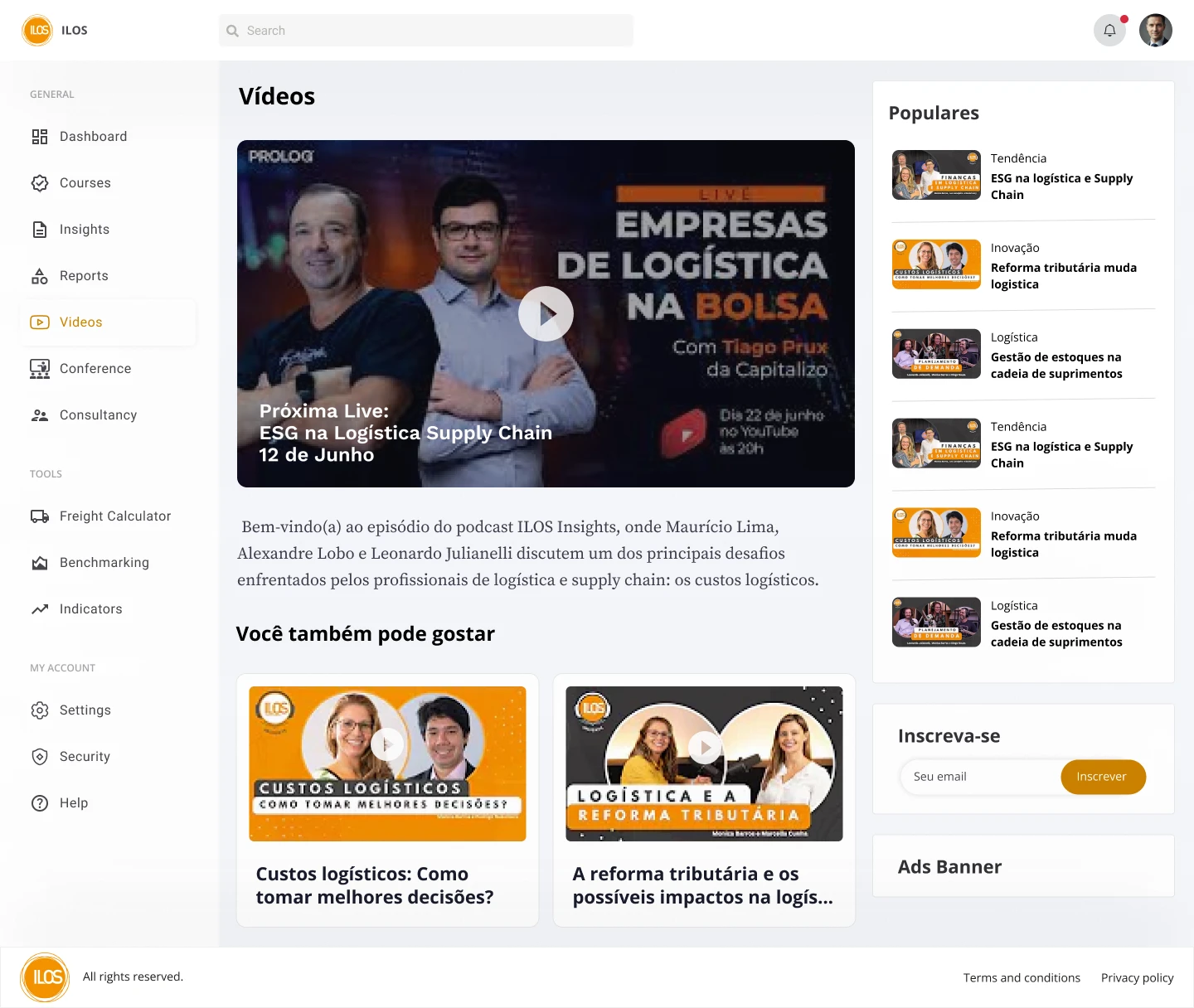 As a leader in logistics and supply chain, Ilos offers diverse tools in different platforms as indicators, reports, podcasts, freight simulators, benchmarking, and consulting. New tools emerged, creating the need to unify the experience.